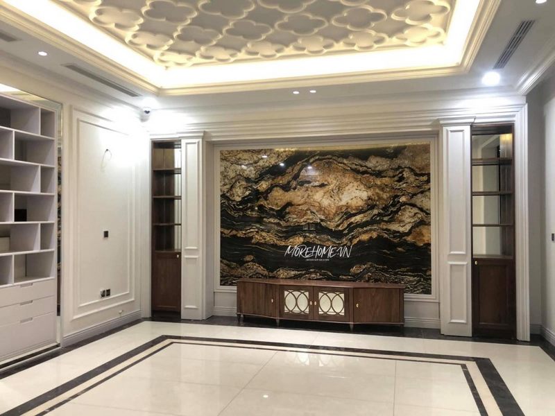 Ngoài ra, việc kết hợp giữa các chất liệu và màu sắc khác nhau sẽ làm tăng tính độc đáo cho bức tường. Có thể thử nghiệm với kính, kim loại hoặc thậm chí là cây xanh treo tường để tạo ra một cái nhìn sáng tạo và gần gũi với thiên nhiên. Sự kết hợp khéo léo giữa những yếu tố này không chỉ đảm bảo sự hài hòa mà còn giúp gia chủ thể hiện gu thẩm mỹ riêng biệt trong từng chi tiết nhỏ nhất, biến phòng khách thành một tác phẩm nghệ thuật sống động.